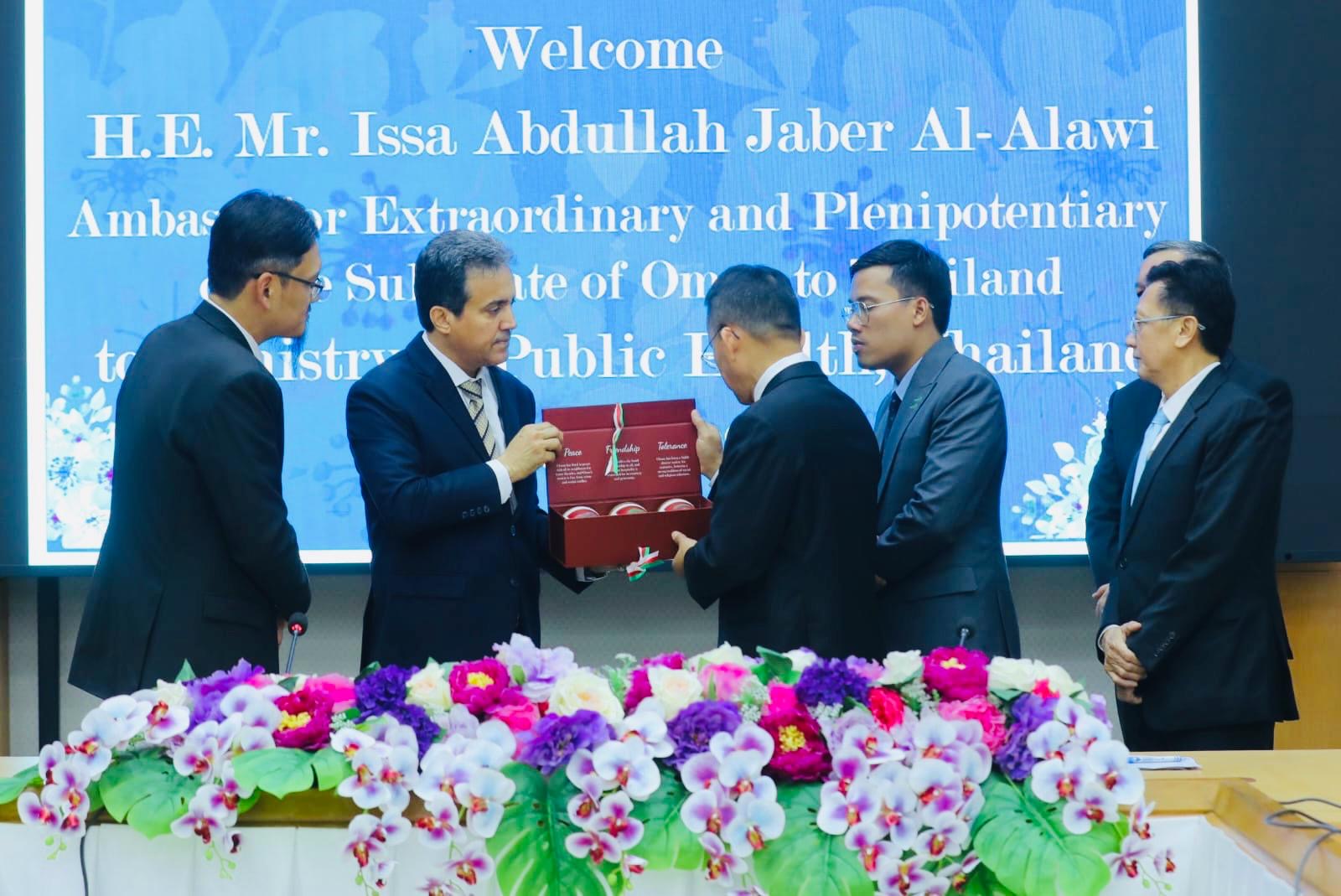 قام سعادة السفير عيسى بن عبدالله العلوي، سفير سلطنة عُمان المعتمد لدى مملكة تايلند، اليوم بزيارة معالي سومساك تيبسوتين، وزير الصحة العامة التايلندي. جرى خلال اللقاء استعراض سبل تعزيز العلاقات الثنائية بين سلطنة عُمان ومملكة تايلند، والتأكيد على أهمية تطوير التعاون المشترك في المجالات الصحية.